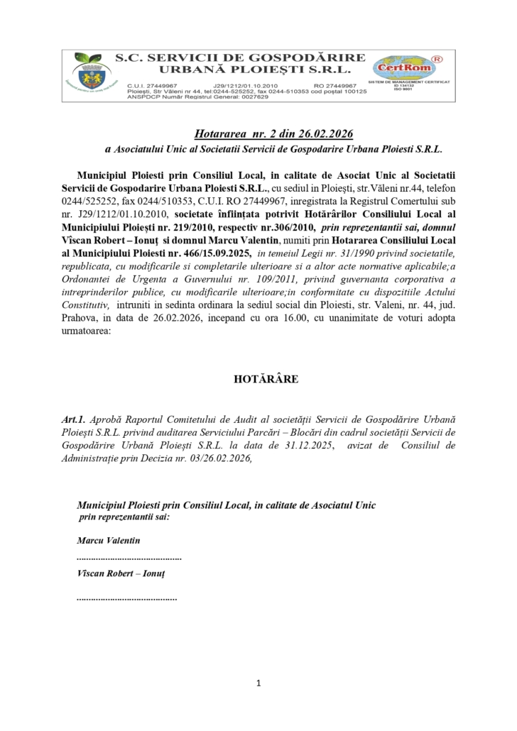 https://sguploiesti.ro/wp-content/uploads/2017/03/Icon_WriteArticles.png300300sguphhttp://sguploiesti.ro/wp-content/uploads/2017/04/logo_green-180x180.pngsguph2026-02-27 09:53:502026-02-27 09:53:50Hotararea nr. 2 din 26.02.2026 a Asociatului Unic al Societatii Servicii de Gospodarire Urbana Ploiesti S.R.L.